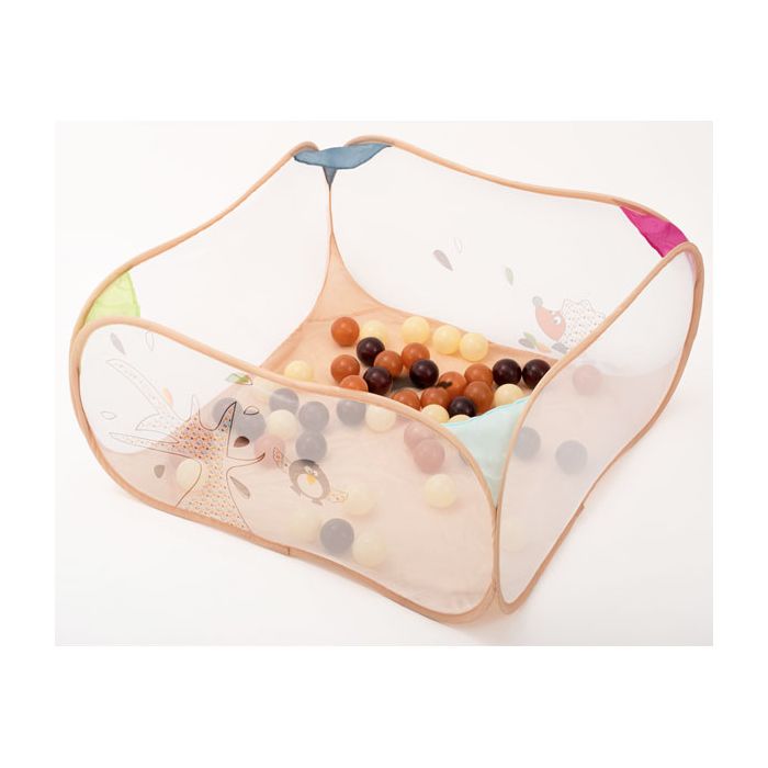 L’aire de jeu pop-up au thème tendre « Nature zen » est spécialement décorée pour les amoureux de la nature et des tendances "zen". Cette jolie aire de jeu délimite un espace pour bébé qui pourra jouer avec les 45 balles multi couleurs et ses jouets préférés.