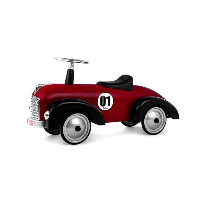 Un vrai bolide de course ! Une ligne fuselée, un design aérodynamique, une carrosserie argentée, un volant tout en métal. Le nec plus ultra pour les apprentis pilotes ! Confortablement installé sur son Speedster Dark Red, bien stable et robuste, les mains sur le volant, les pieds bien au sol, votre enfant deviendra vite un as du volant !