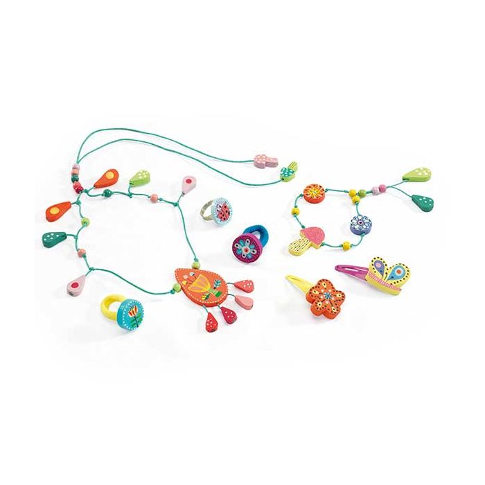 Joli coffret de bijoux en bois de la marque Djeco, pour faire plaisir aux petites filles dès 4 ans. Bijoux présentés dans une jolie boîte qui servira de boîte à bijoux.