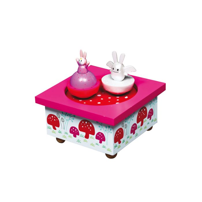 Boîte à musique à remonter. La mélodie fait danser les figurines et appaise bébé. Une idée cadeau très appréciée par les parents pour la naissance d'un nouveau né.