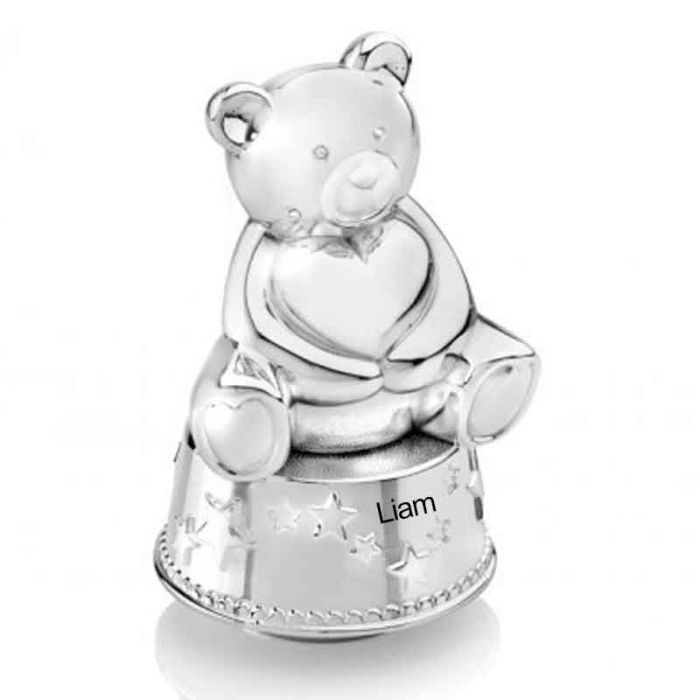 Boîte à musique - tirelire ours avec coeur, argenté, Cadeau Naissance