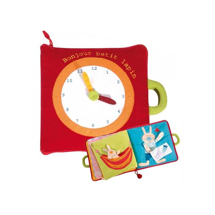 Bonjour Petit Lapin décrit le déroulement de la journée de l'enfant tout en couleurs et interactivité.Grâce à une abondance d'éléments amovibles et de découvertes surprises, petit lapin va vivre de page en page les étapes de sa journée: sortir du lit, prendre un petit déjeuner, s'habiller, jouer avec les copains et tant d'autres activités qu'il racontera le soir, blotti dans les bras de son papa.Un livre fondamental, en tissu, pour apprendre aux petits la notion du temps.Baliser avec l'enfant les étapes de sa journée est pour lui extrêmement rassurant. Pour tout âge.