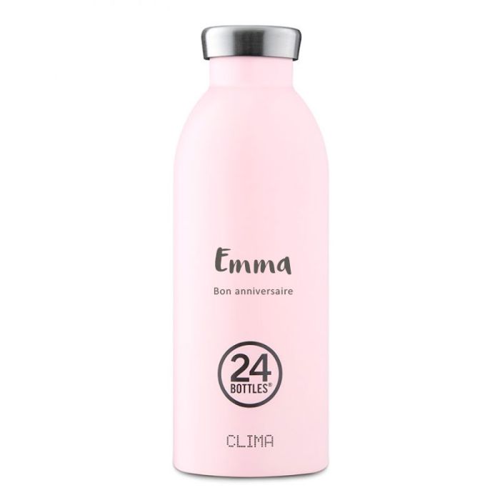 Gourde 500 ml isolante (chaud ou froid) à personnaliser, cadeau Bébé Fille à graver, 24 Bottles CLIMA 500ml Candy Pink