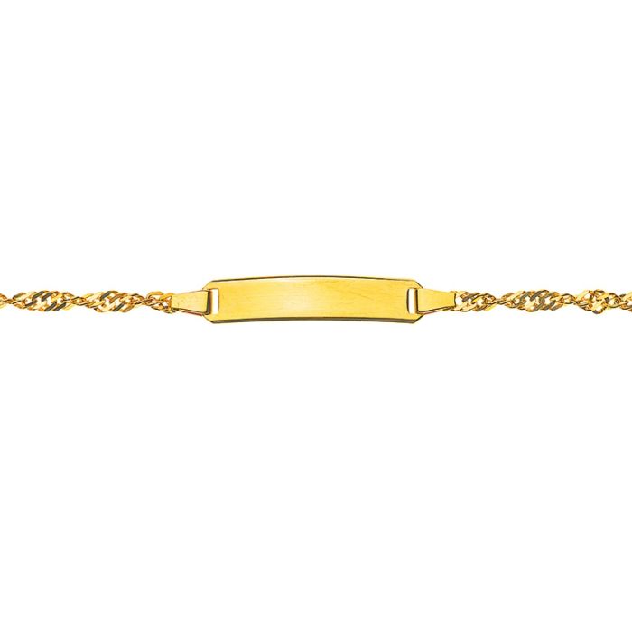 Jolie gourmette en or jaune 375, la maille est de type singapour. Vous pouvez faire graver un seul côté de la gourmette ou les deux.