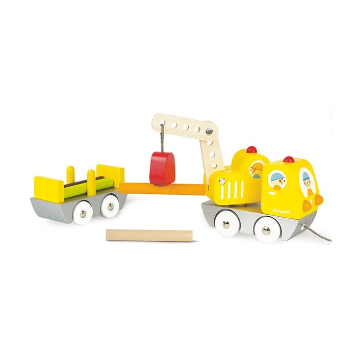 Camion forestier en bois pour développer la motricité et l'imagination de l'enfant. Il pourra s'amuser à charger et décharger son camion à l'infini! Le camion est composé d'une grue rotative magnétique et d'une remorque avec 4 grumes magnétiques. Bois: base en pin, cabine et grue en MDF et grumes en merisier.
