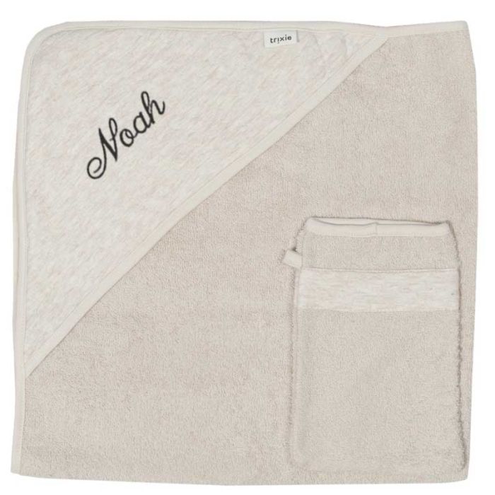 Ce set Trixie contient une cape de bain douillette et son gant de toilette assorti. Idéale pour envelopper votre bébé après le bain pour qu'il n'ait pas froid.