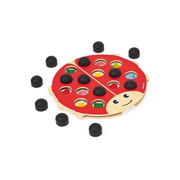 Jeu de mémory avec 3 niveaux de difficultés ainsi que 5 fiches différentes (les couleurs, les formes, les poissons, les légumes ou les dessins de la ferme). Le but du jeu Coccinémo est donc de retrouver les paires le plus rapidement possible. Dès 2 ans.