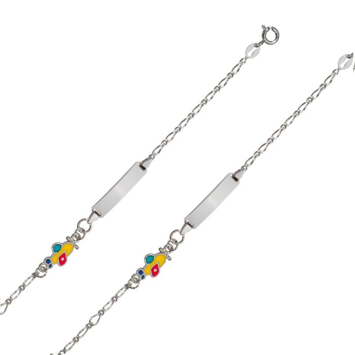 Gourmette pour bébé en argent 925, avec un joli motif d'avion en émail.