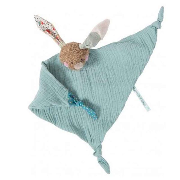 Joli doudou Moulin Roty (en tissus style gaze) sur lequel vous pouvez broder le prénom de bébé.
