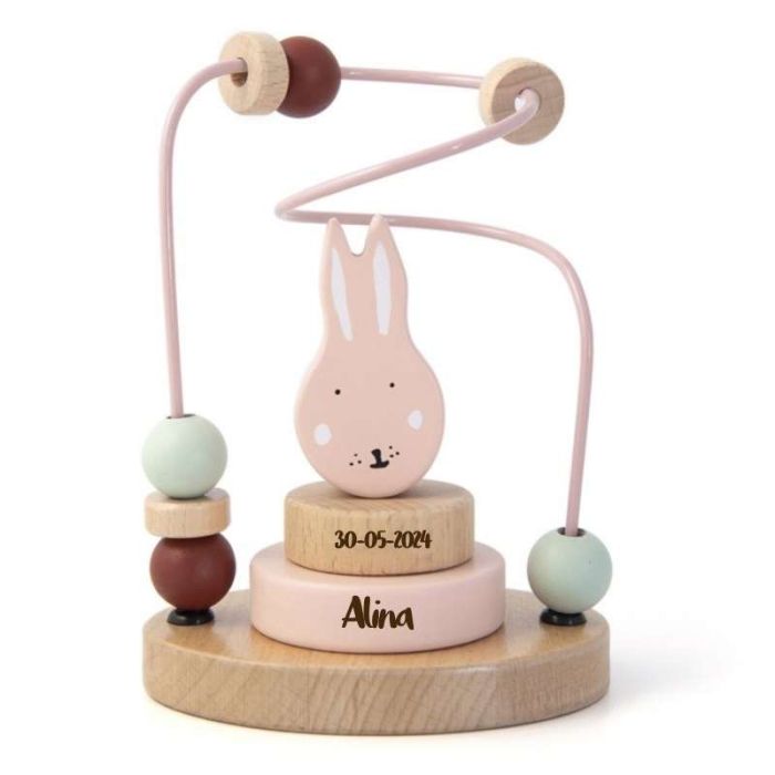 Labyrinthe à perles en bois - lapin rose de Trixie Baby : un jouet d'éveil personnalisable et enchanteur