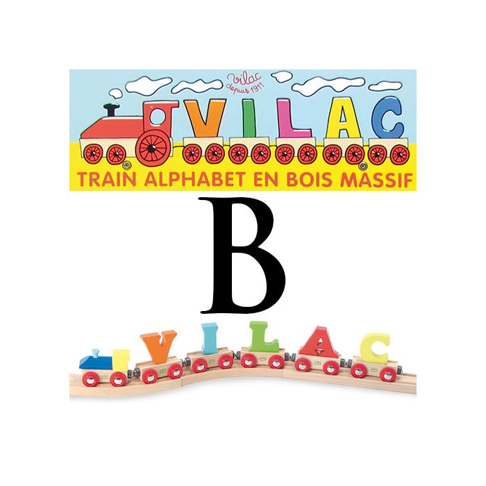 Apprendre à écrire son prénom (ou l'alphabet) avec le train en bois de Vilac! Il suffit d'accrocher les différents "wagons-lettres" à la jolie locomotive (les wagons sont aimantés).