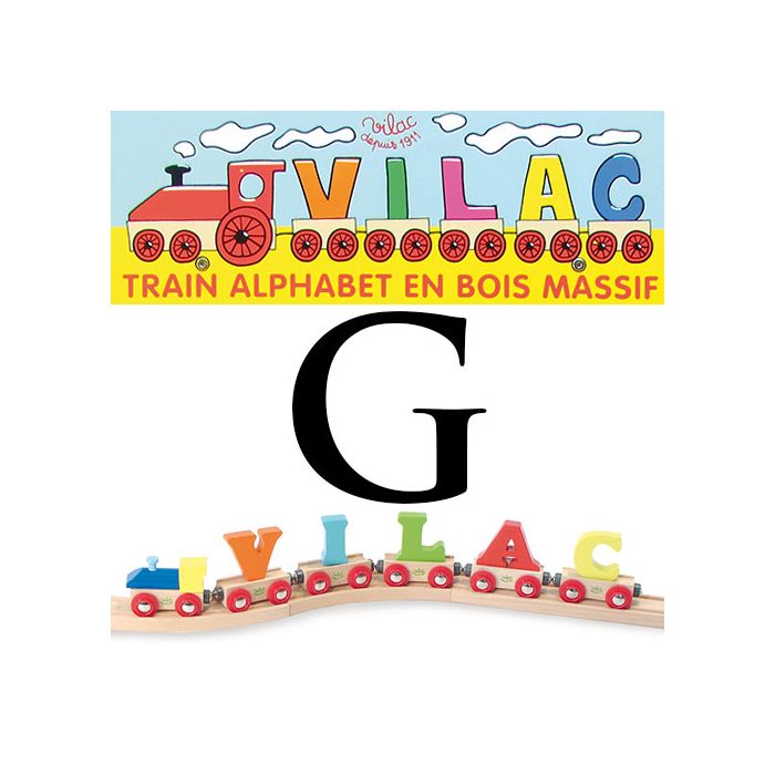 Apprendre à écrire son prénom (ou l'alphabet) avec le train en bois de Vilac!Il suffit d'accrocher les différents "wagons-lettres" à la jolie locomotive (les wagons sont aimantés).