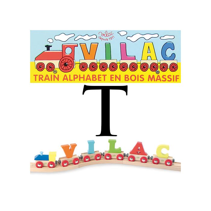 Apprendre à écrire son prénom (ou l'alphabet) avec le train en bois de Vilac!Il suffit d'accrocher les différents "wagons-lettres" à la jolie locomotive (les wagons sont aimantés).