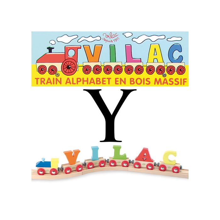 Apprendre à écrire son prénom (ou l'alphabet) avec le train en bois de Vilac!Il suffit d'accrocher les différents "wagons-lettres" à la jolie locomotive (les wagons sont aimantés).