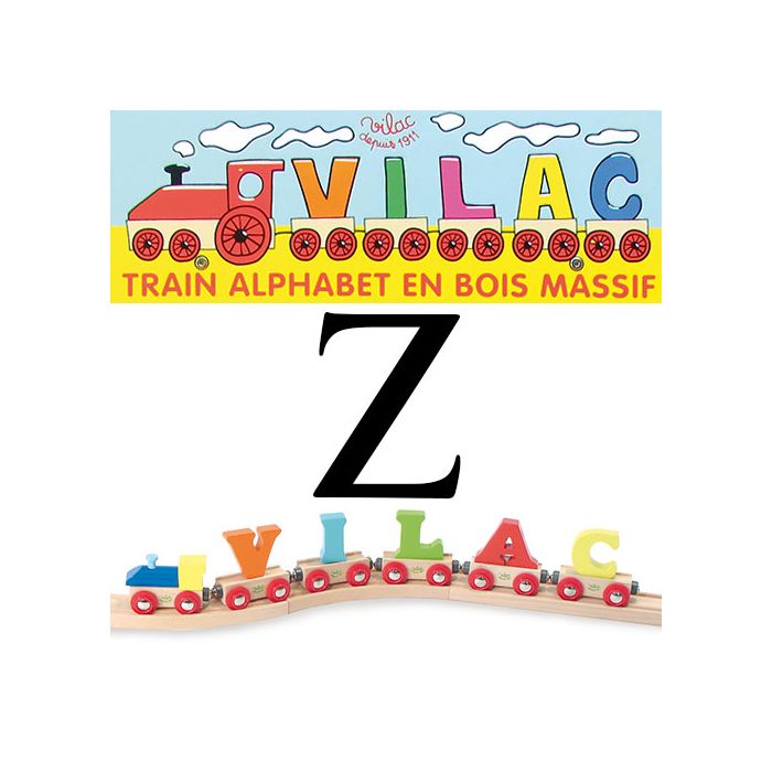 Apprendre à écrire son prénom (ou l'alphabet) avec le train en bois de Vilac!Il suffit d'accrocher les différents "wagons-lettres" à la jolie locomotive (les wagons sont aimantés).