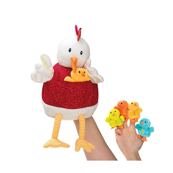 Maman Ophélie est une marionnette pour les mains; et les poussins, des marionnettes à doigts.