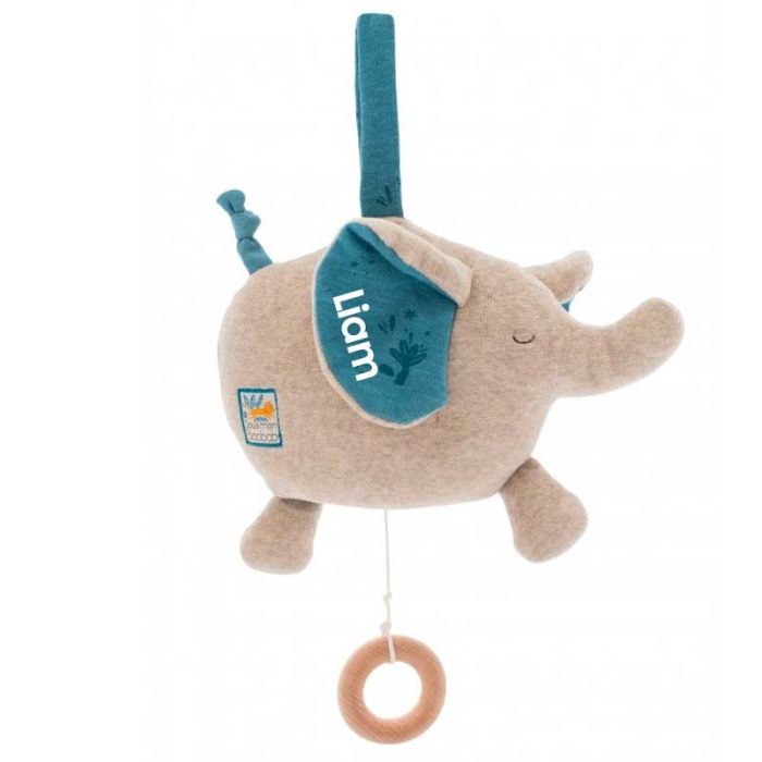 Boîte à musique Moulin Roty Peluche Eléphant personnalisable 36 cm, Cadeau Naissance Garçon