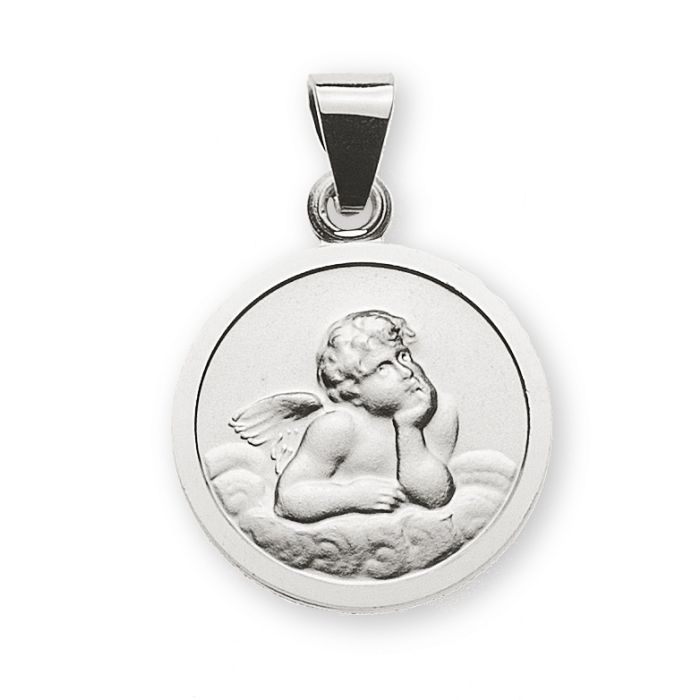 Pendentif 12mm Or Blanc Baptême Ange Gardien, avec Gravure, Livraison Gratuite Suisse