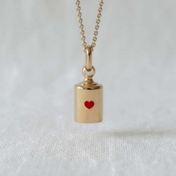 Ce bijou délicat arbore un cœur rouge émaillé sur le devant, symbole universel d’amour, et peut être personnalisé au dos avec une gravure sur 3 lignes : prénoms, dates de naissance, petits poids ou un message personnel.