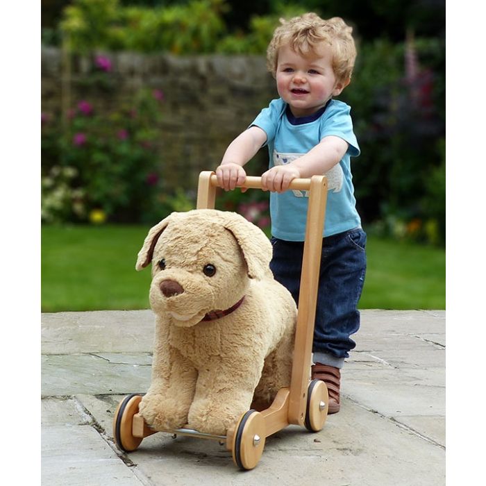Cet adorable chien trotteur aidera bébé à faire ses premiers pas.