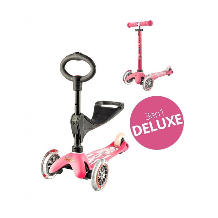 Trottinette 3 en 1 Deluxe avec siège, Livraison Gratuite, Micro rose